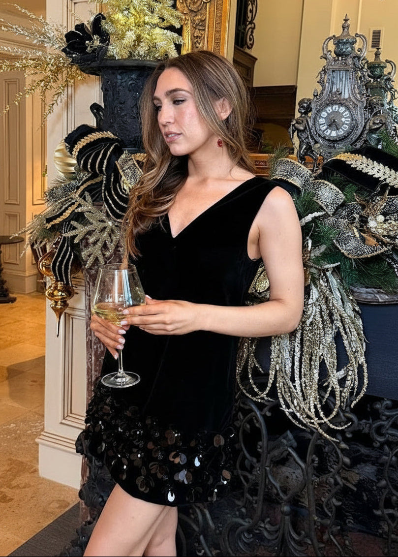 DECADENT DREAMS CHOCOLATE VELVET & SEQUIN DRESS