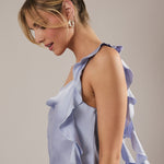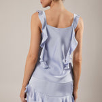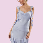 SPRINGTIME STROLL COWL NECK RUFFLE STRAP SATIN TOP