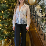 Spread the love with this charming LOVE NOTES EMBROIDERED BUTTON UP IN WHITE featuring delicate embroidered details. The sheer fabric, crisp collar, and lustrous satin buttons create an effortlessly chic look that's perfect for layering or wearing solo. A playful piece that brings personality to your everyday wardrobe.