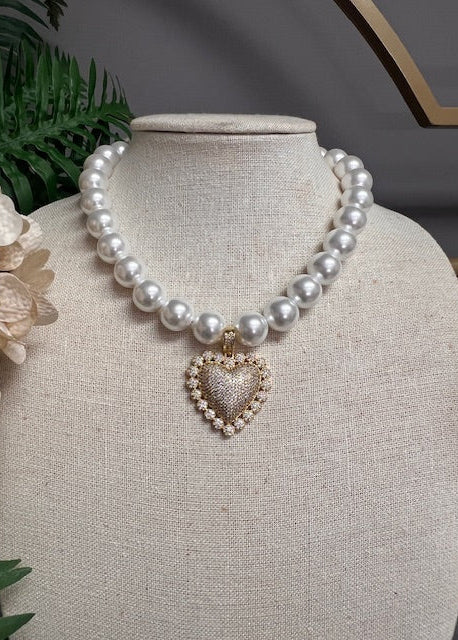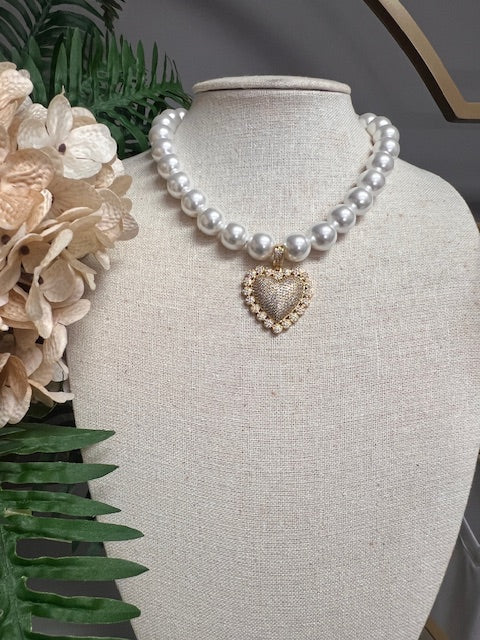 VIRTUE - FULL OF LOVE PEARL NECKLACE WITH HEART PENDANT