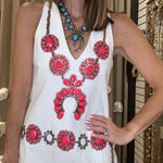 Turn heads in this playful QUEEN OF SPARKLES WHITE DENIM PINK NECKLACE TANK DRESS that blends timeless denim with a pop of pink sparkle. The lightweight white denim keeps you comfortable in warm weather, while the eye-catching necklace detail adds just the right amount of personality to your everyday look. Perfect for those moments when you want to feel put-together without trying too hard, this dress transitions seamlessly from brunch to weekend adventures. Grab yours before it's gone—this online exclusive won't stick around long.