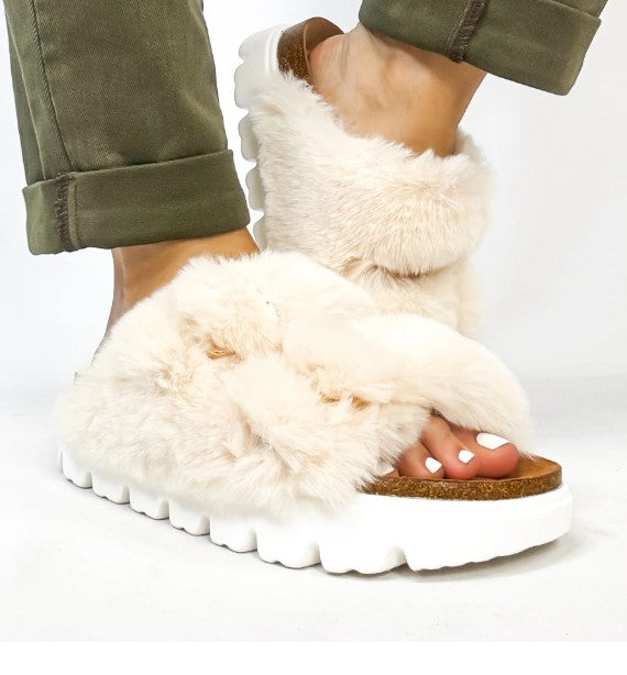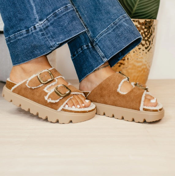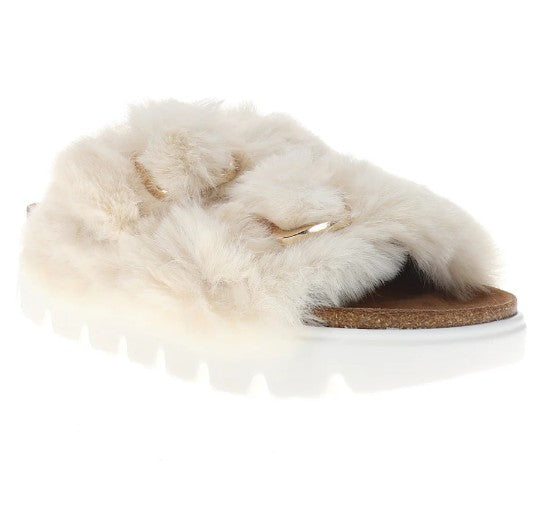 Soft, cozy, and seriously on-trend—these plush faux fur slides are made for off-duty days and lounging in luxe comfort. With oversized buckles and a chunky sole, they’re the perfect blend of bougie and bold.