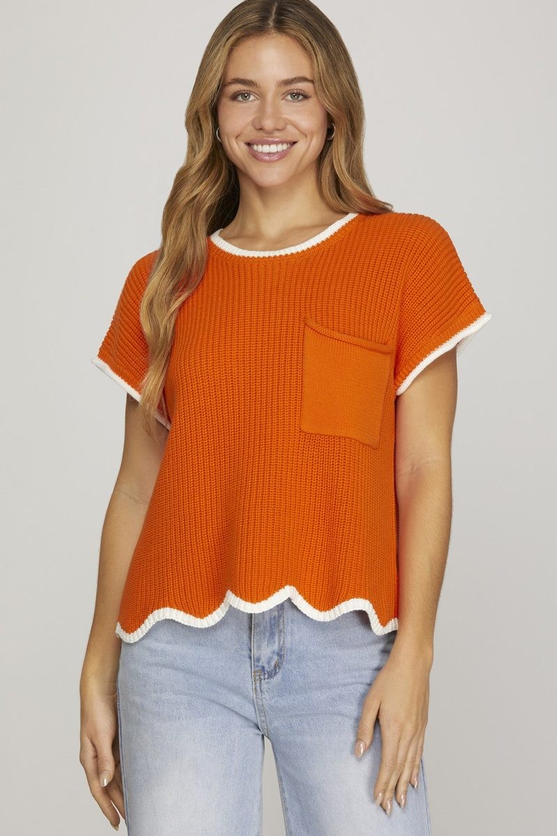 Show your school spirit with the COLLEGE PRIDE GAME DAY SWEATER! Featuring a cozy crew neck with crisp white trim, a handy breast pocket, and a scalloped hem, it’s perfect for cheering on your team in style. Choose maroon or orange and get game day ready!