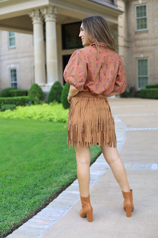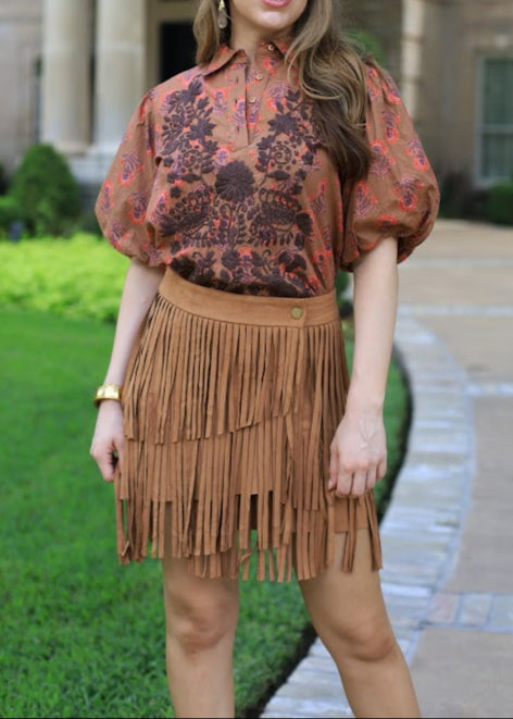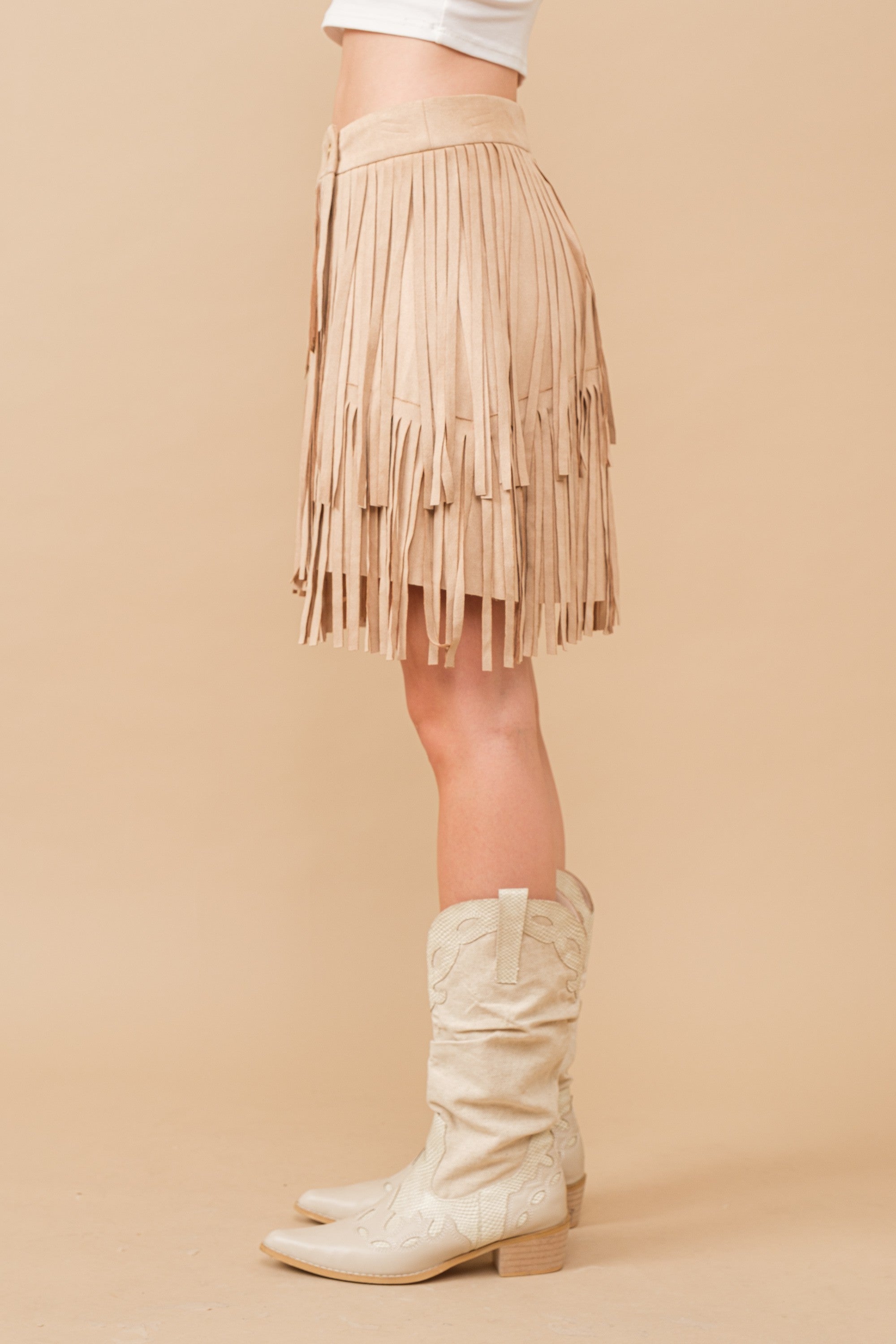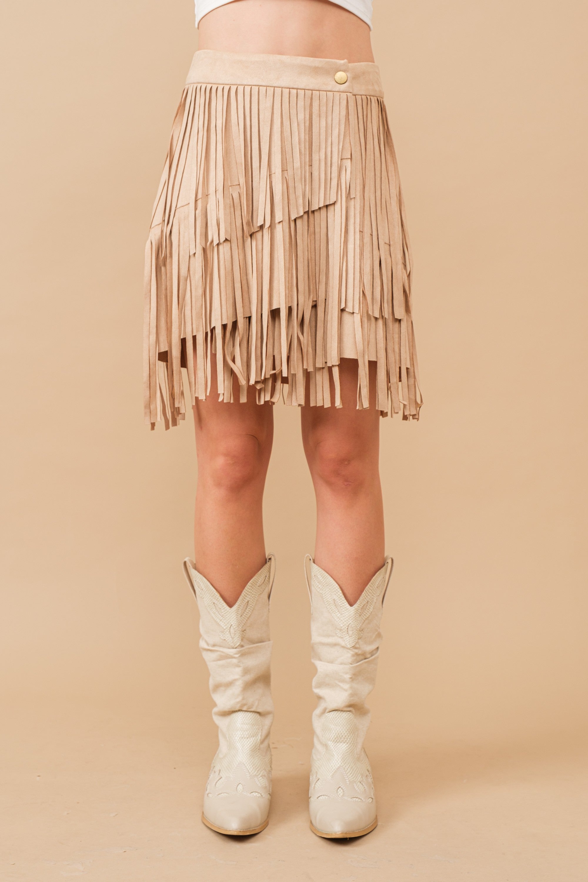 FALL VIBES FAUX SUEDE FRINGE SKIRT - BROWN OR BEIGE