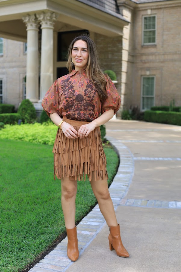 Capture the essence of fall with the FALL VIBES FAUX SUEDE FRINGE SKIRT, available in brown or beige. This wrap mini skirt secures with a button and snap, and its charming fringe detail adds a warm, seasonal flair to your outfit.