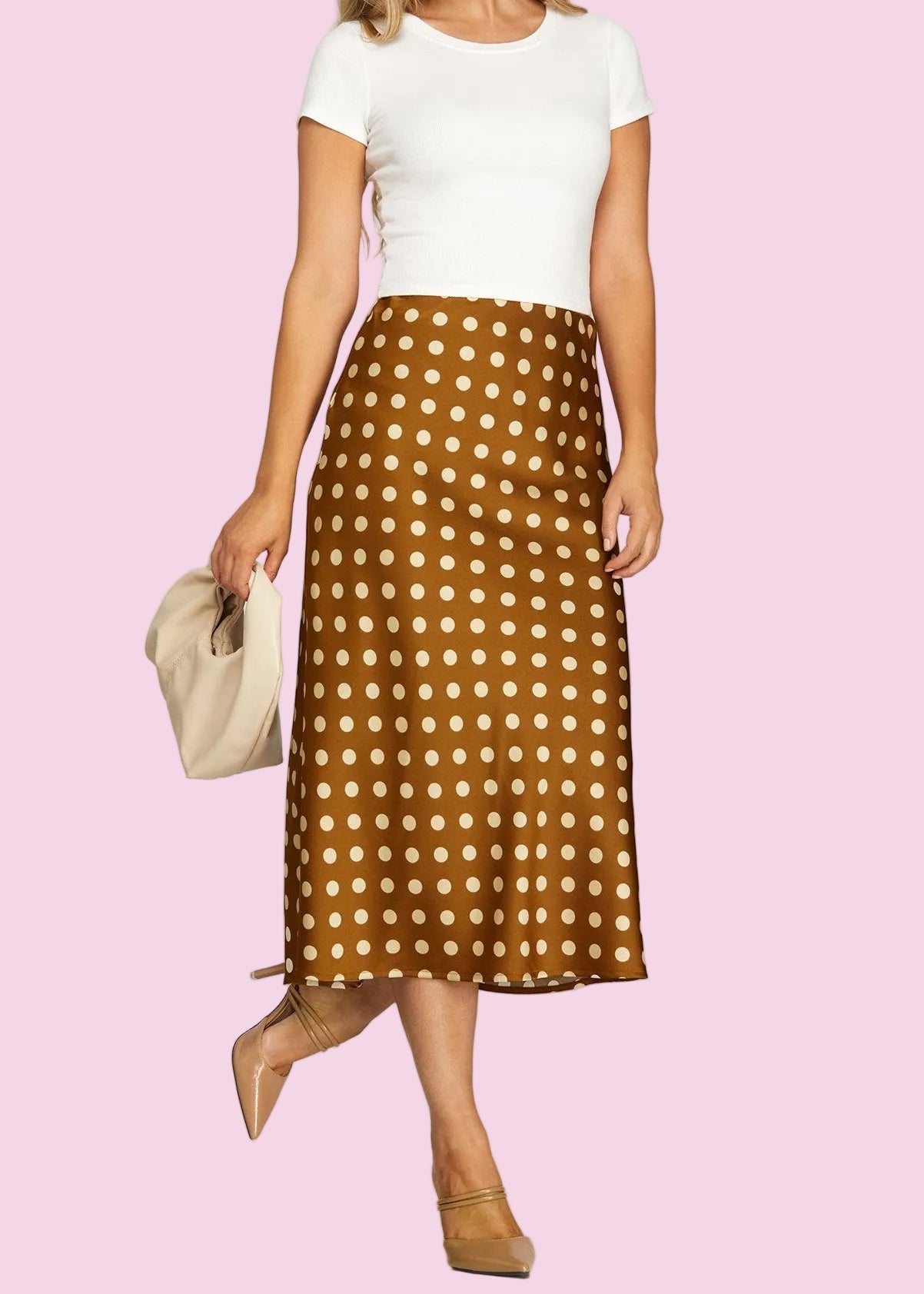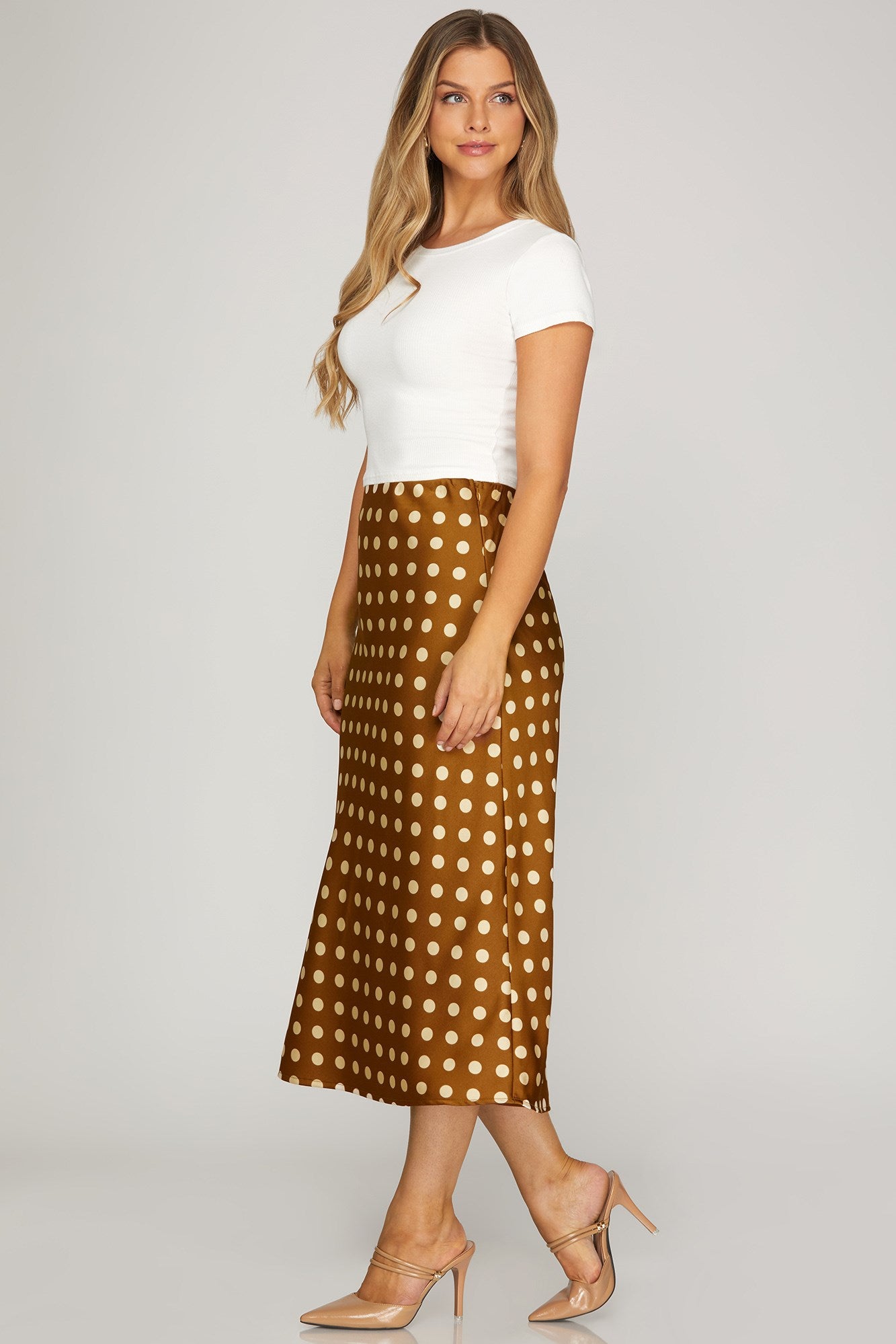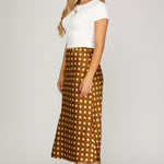 Turn heads with this SPOTTED AROUND TOWN POLKA DOT SKIRT featuring a classic polka dot pattern in your choice of chic black or rich brown. The comfortable elastic waistband keeps you feeling fabulous all day long, while the smooth lining ensures a polished look with every twirl. Perfect for casual outings or dressed-up occasions, this woven beauty is your go-to piece for effortless style that's anything but boring.