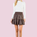 A LITTLE BIT FLIRTY TIERED FAUX LEATHER SKIRT