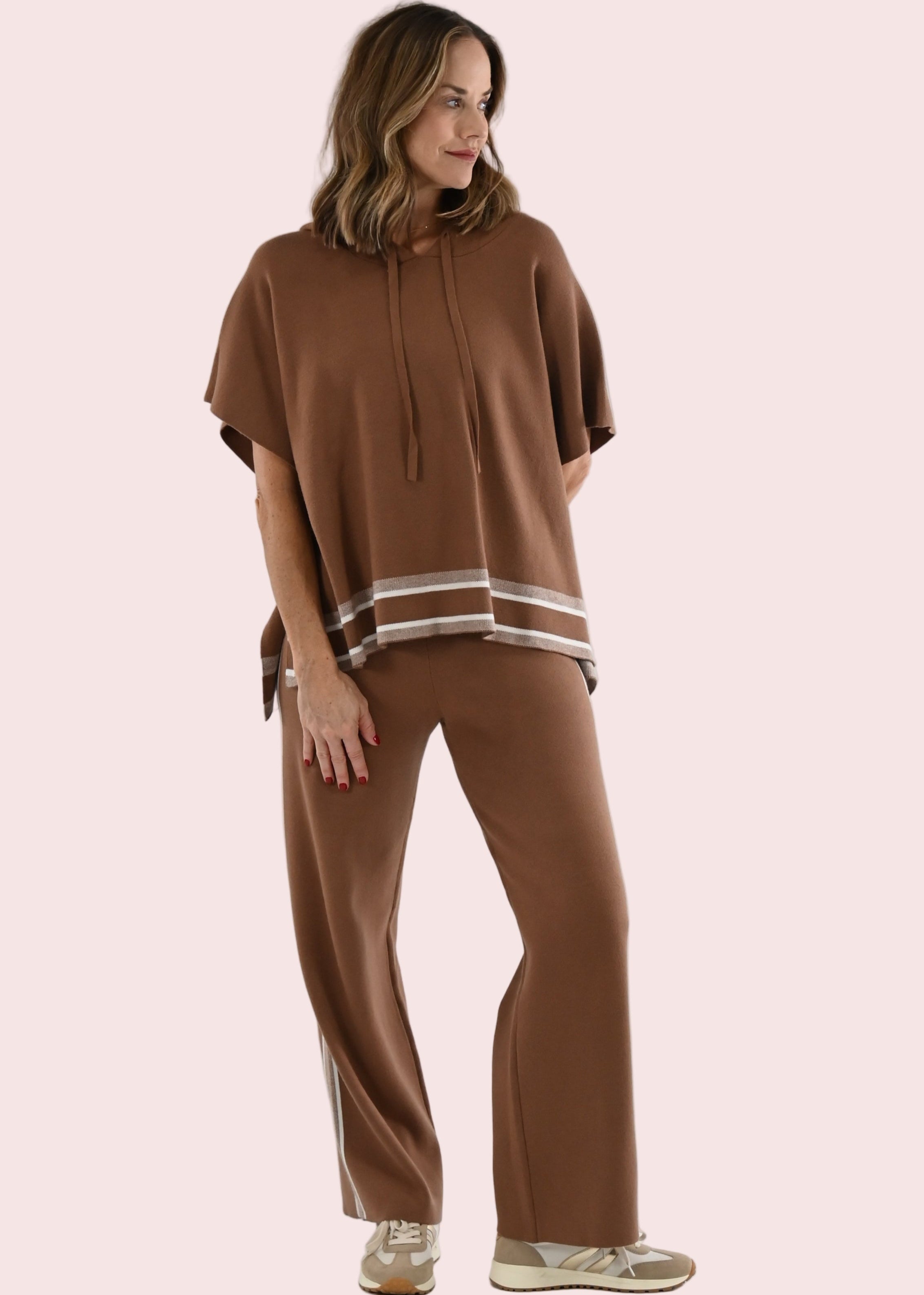 This RUNNING ERRANDS HOODED SWEATER TOP features a loose-fit with side openings secured with snap closures and a stylish striped hem. For a coordinated outfit, wear it with the matching pants and elevate your casual style effortlessly.