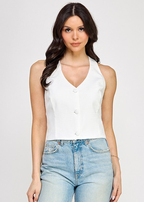 CHARMED MOMENT HALTER NECK BOW VEST TOP - WHITE OR ORANGE