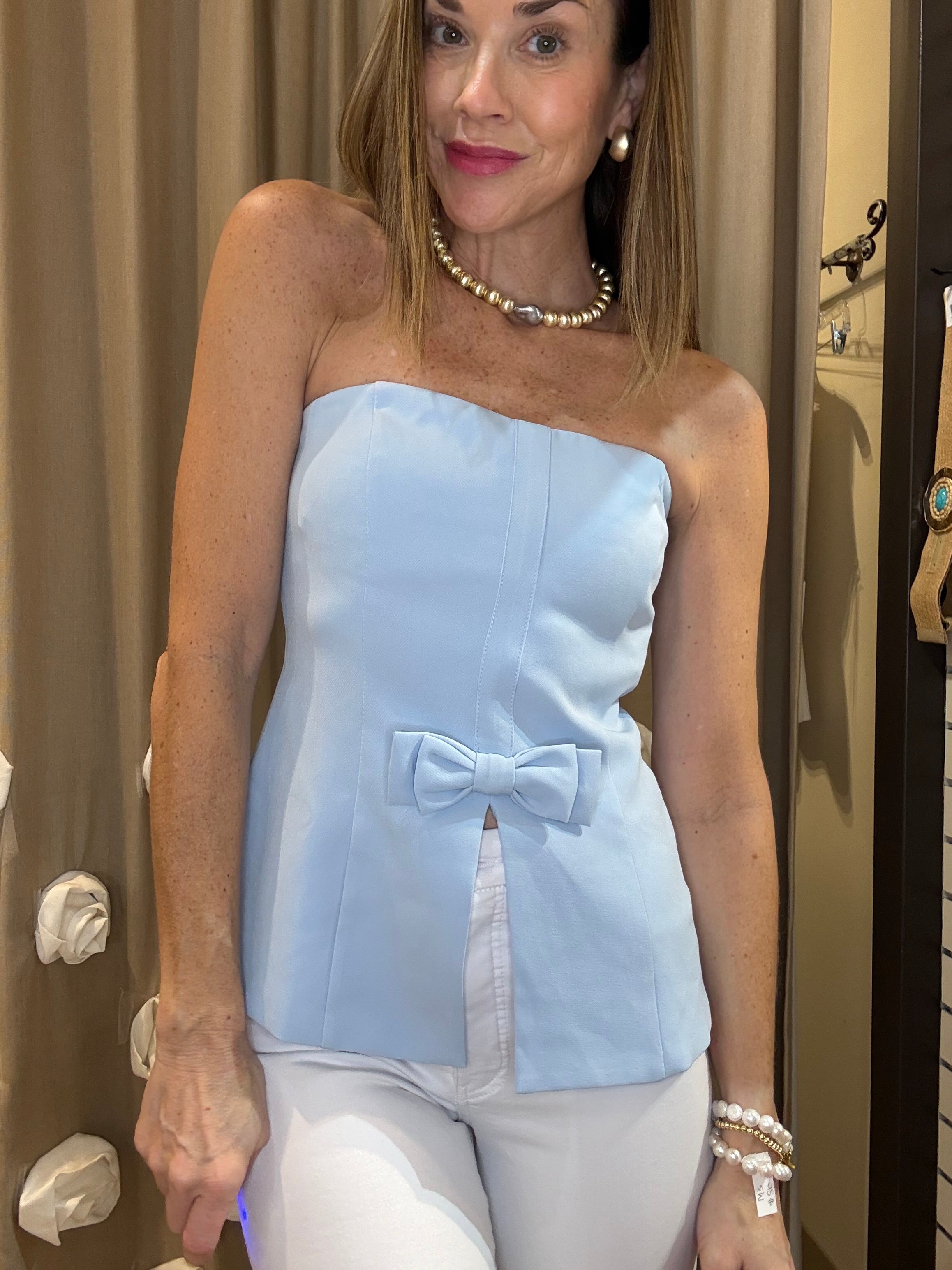 SPRINGTIME GLOW BABY BLUE STRAPLESS TOP