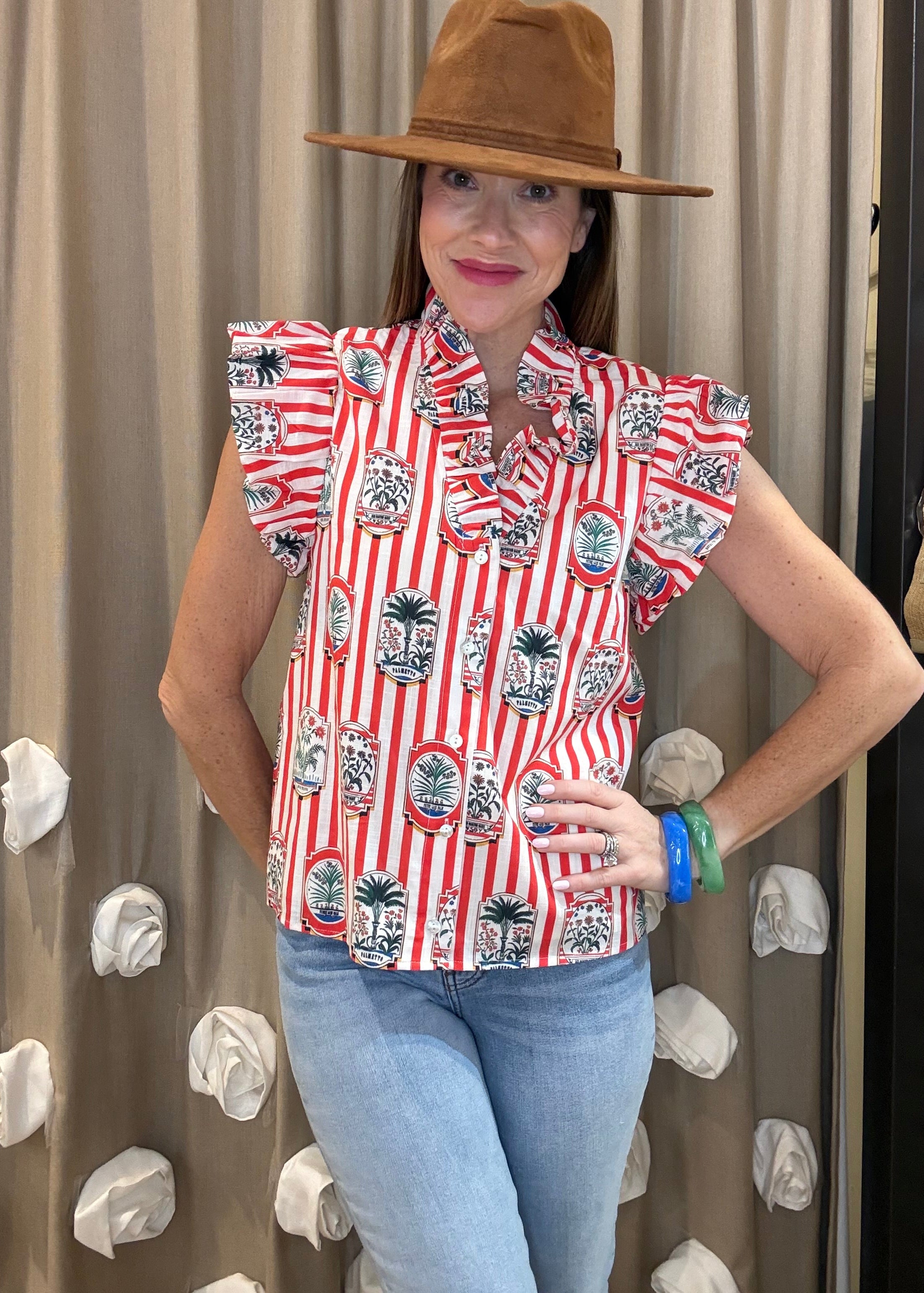 SUMMER BREEZE COTTON RED STRIPE BLOUSE