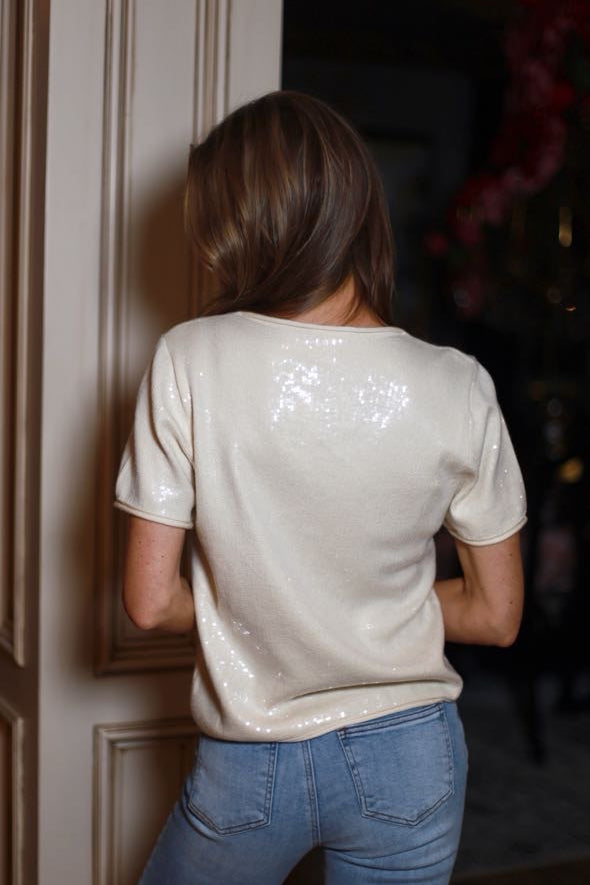 FLIRTY MOMENTS CREAM SPARKLE TOP