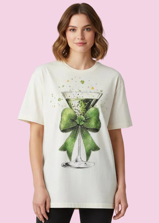 ST PATTYS CLOVER MARTINI BLING T-SHIRT