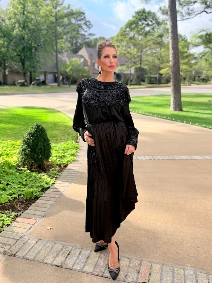 Turn heads at your next celebration in this stunning GLAM NIGHT OUT BLACK SEQUIN BLOUSE. Luxurious silky fabric drapes beautifully while thousands of shimmering sequins catch the light with every movement. The elegant long sleeves provide sophisticated coverage, while the playful bubble hem adds modern flair. Perfect for holiday parties, date nights, and special occasions where you want to feel absolutely radiant.
