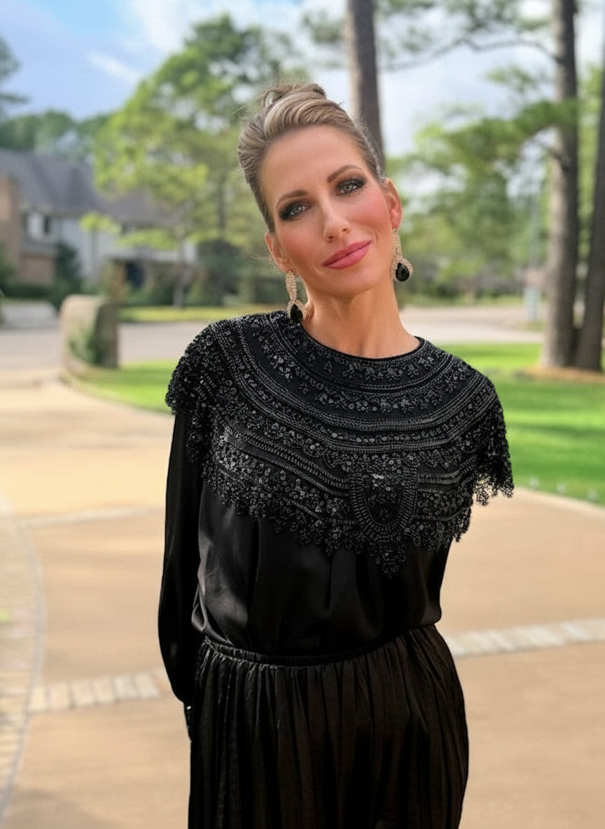 GLAM NIGHT OUT BLACK SEQUIN BLOUSE