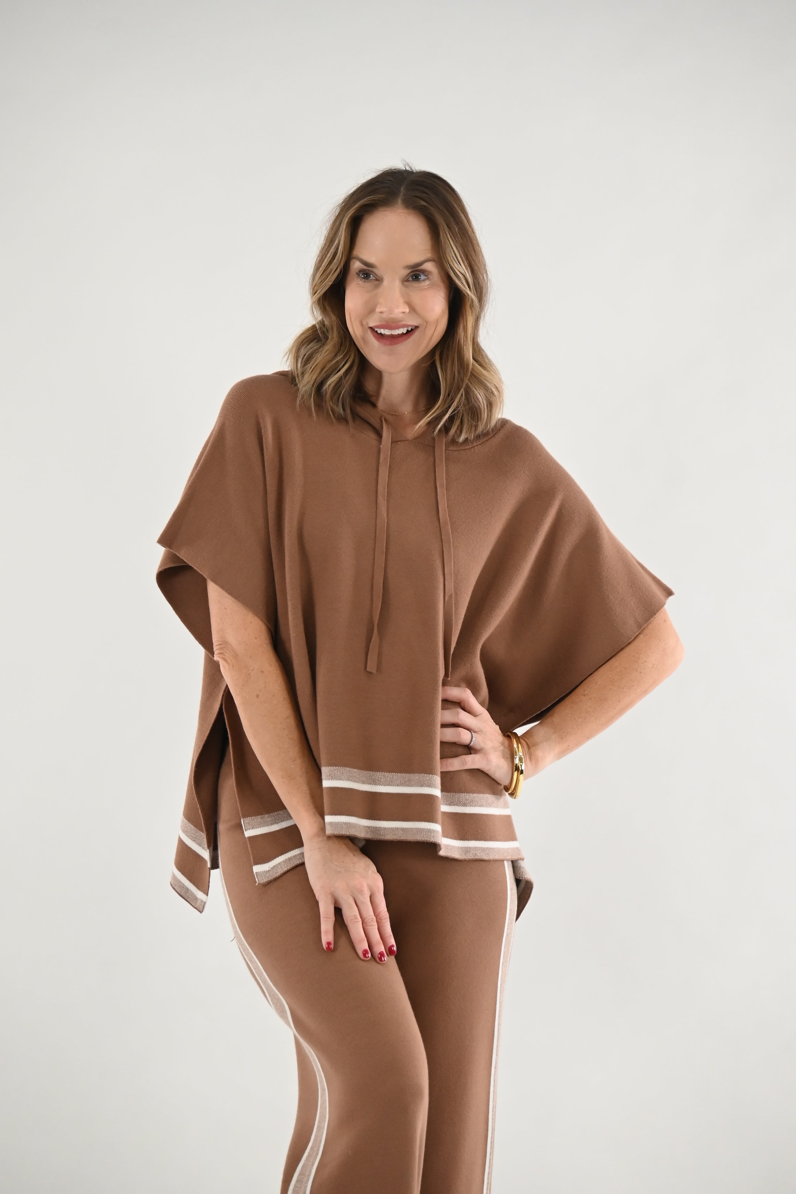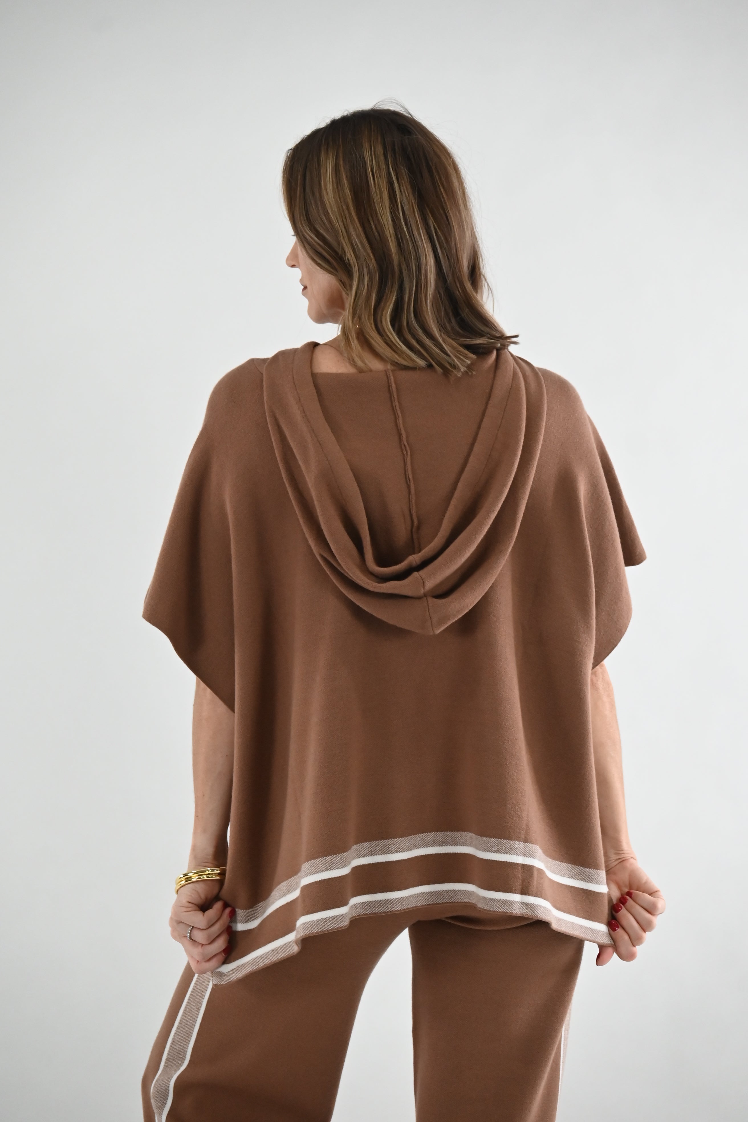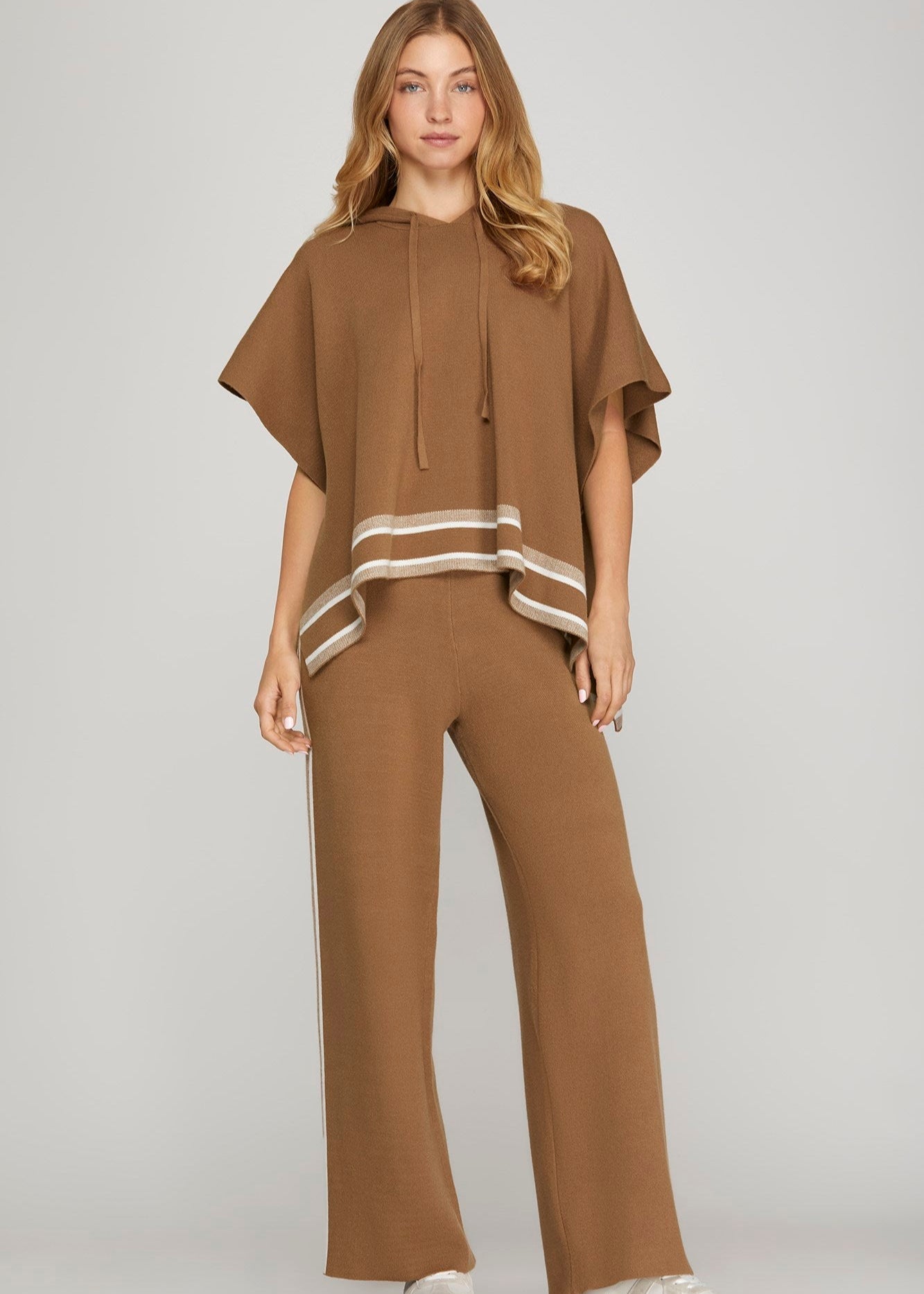 This RUNNING ERRANDS HOODED SWEATER TOP features a loose-fit with side openings secured with snap closures and a stylish striped hem. For a coordinated outfit, wear it with the matching pants and elevate your casual style effortlessly.