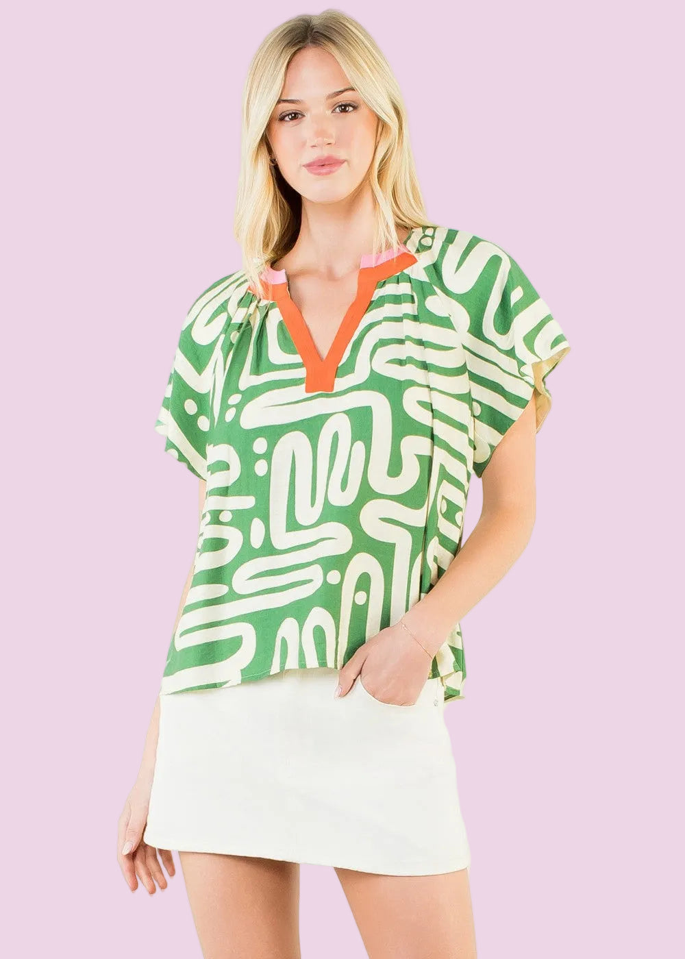 SPRING ENERGY KELLY GREEN PATTERN BLOUSE