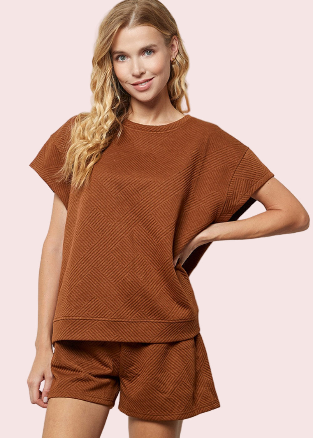 Step out in style with our LOOK AGAIN TEXTURED TOP! Enjoy the cozy soft fabric, trendy drop shoulders, and a scoop neckline that flatters every look. Perfect for refreshing your fall closet—don’t forget to match it with the coordinating shorts for extra fun!
