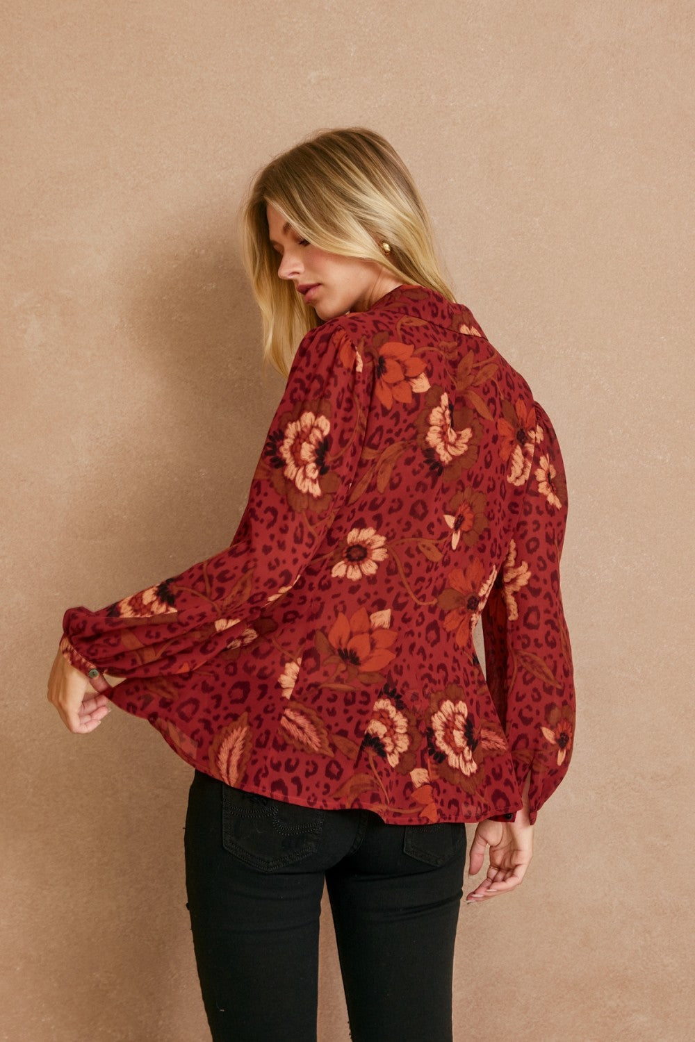 HARVEST MIRAGE FLARED HEM BLOUSE