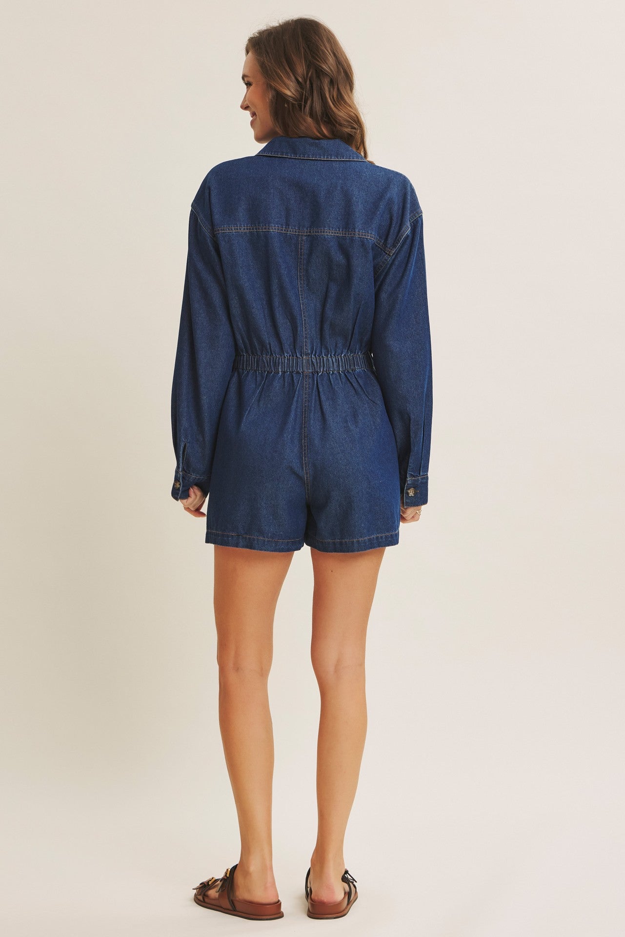 EASY DOES IT LONG SLEEVE DENIM ROMPER