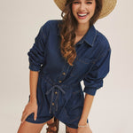 EASY DOES IT LONG SLEEVE DENIM ROMPER