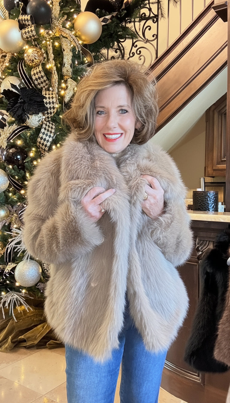 FIRESIDE CHAT FAUX FUR COAT - BLACK, BEIGE, TAUPE, COFFEE