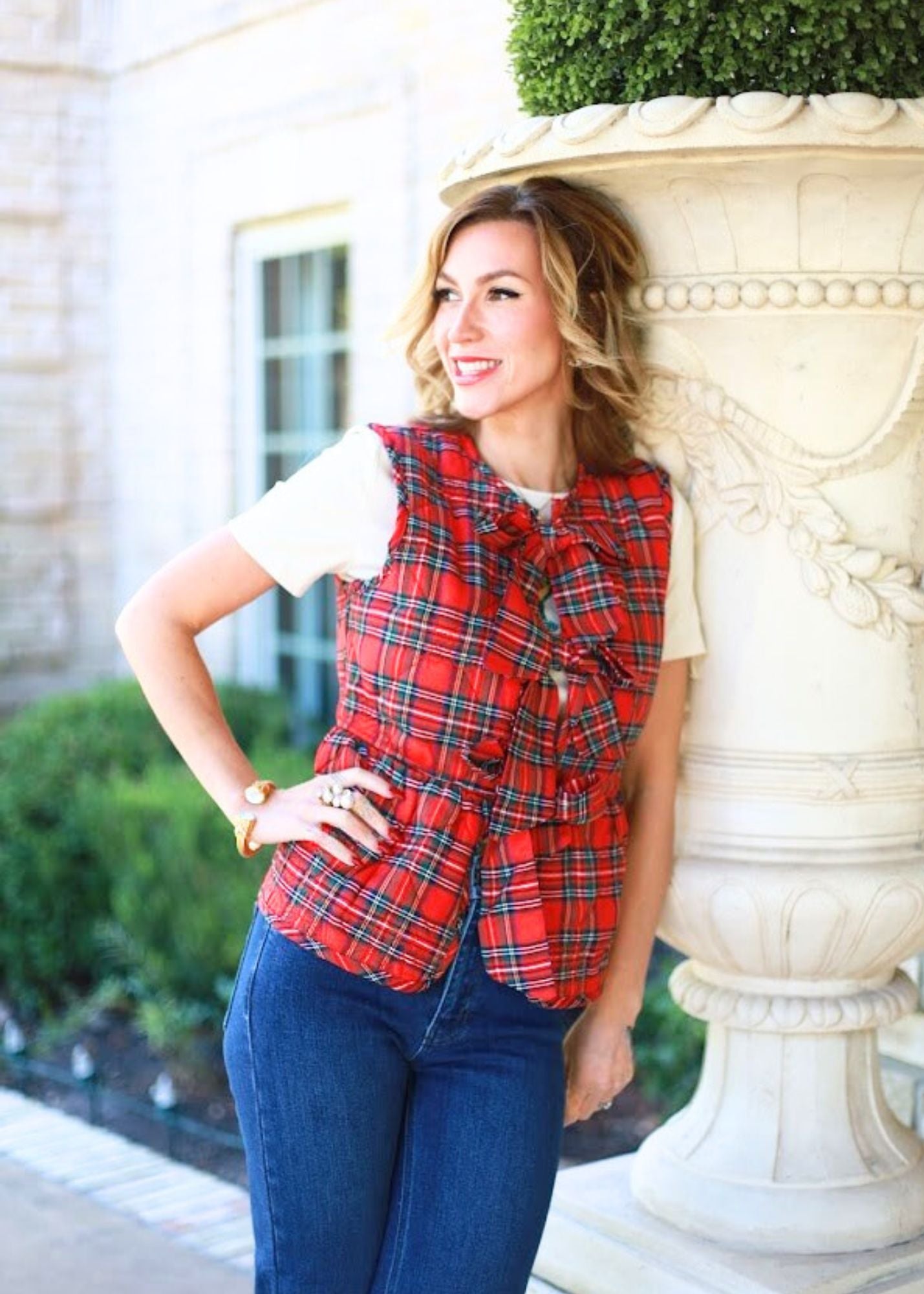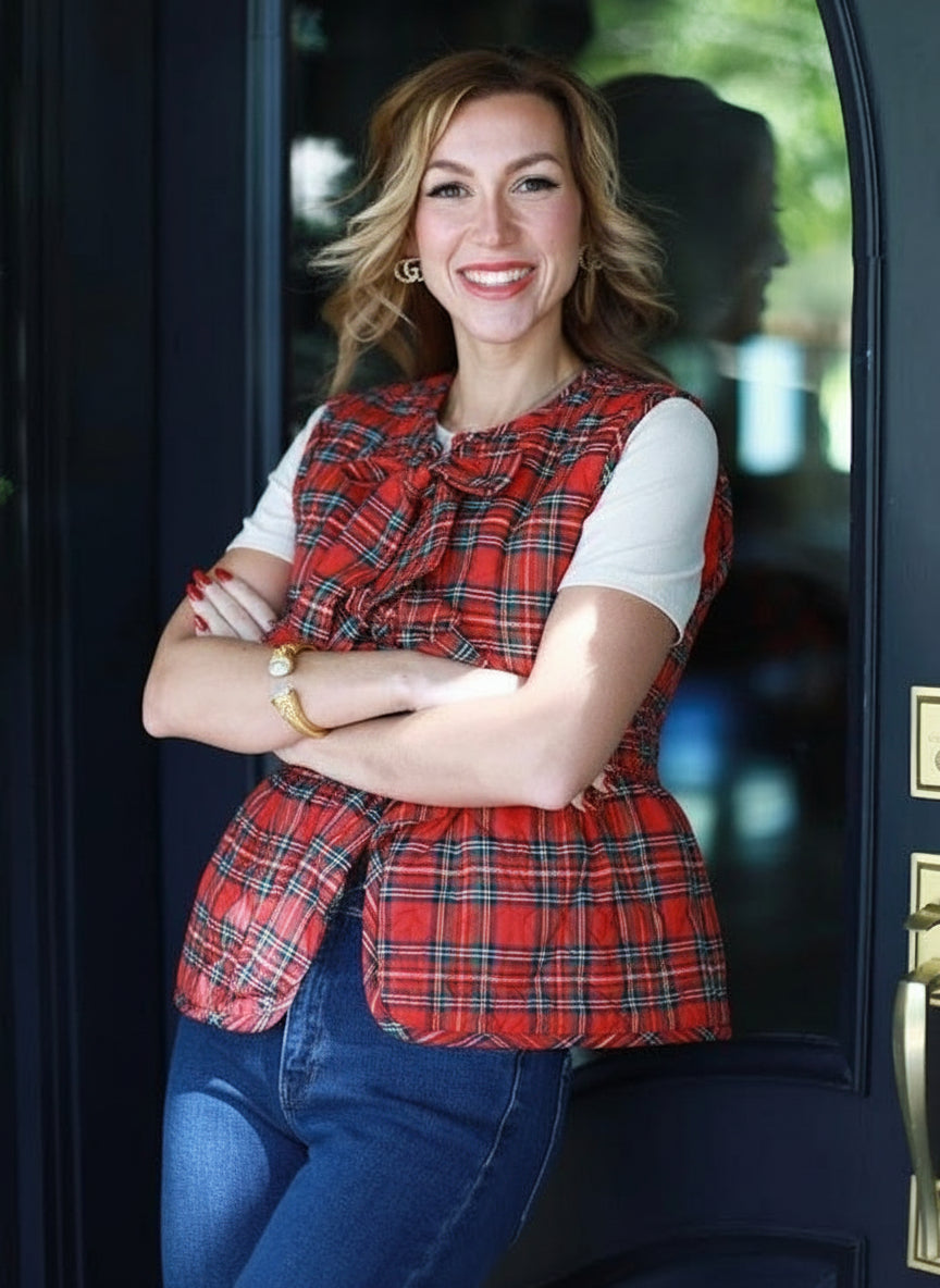 PERFECTLY GIFTED RED PLAID BOW VEST