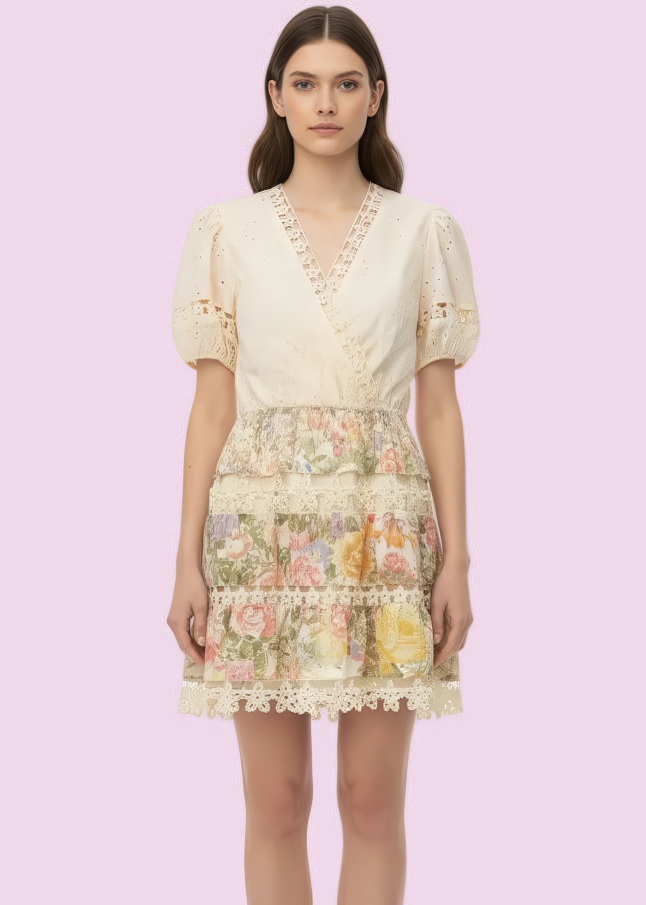 Flirty and fun, this SWEET SERENADE FLORAL MINI DRESS features delicate eyelet fabric paired with charming embroidered puff sleeves that add a touch of whimsy. The elastic waist ensures a comfortable fit, while the blooming floral pattern on the bottom brings garden-fresh style to any occasion. Perfect for those who love feminine details with an easygoing vibe.