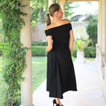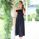 Make a statement with the LEFT AN IMPRESSION BLACK OFF SHOULDER DRESS! Featuring a flattering basque waist, this cotton dress offers an elegant off-shoulder design, a flowing full skirt, and convenient pockets for effortless style and comfort.