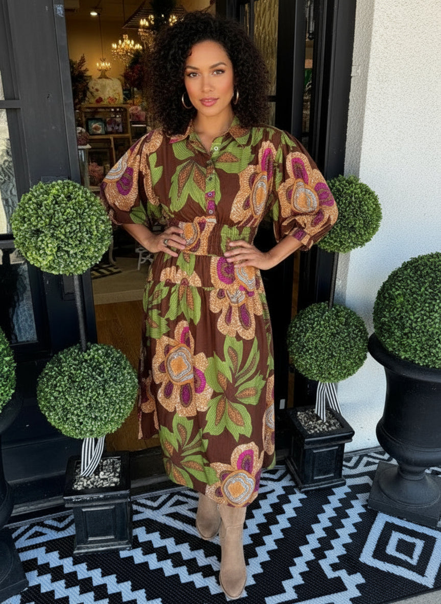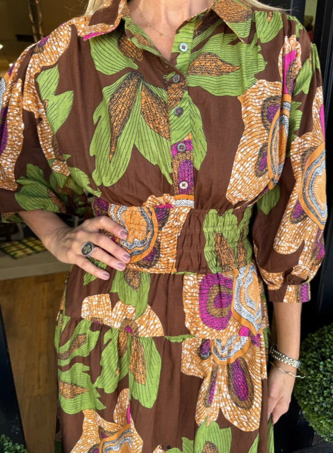 Upgrade your autumn style with the Uncle Frank Big Blooms Dress. Featuring an elegant floral design, this dress captures the essence of the season with refined charm. Its classic shape guarantees a flattering look for any event, while the soft cotton material offers lasting comfort. Plus, convenient pockets add a practical touch to this must-have wardrobe staple.