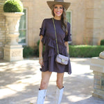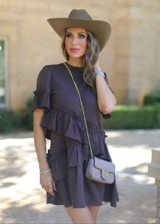 ONLINE EXCLUSIVE: FEELS JUST RIGHT CHOCOLATE RUFFLE DRESS