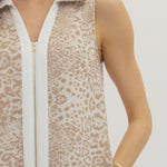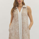 Embrace the season in our WILDLY CHIC LEOPARD PRINT DRESS, perfect for spring adventures. The sleeveless silhouette keeps you cool while the collared neckline adds polished sophistication. Featuring a convenient front zipper, functional pockets, and thick, non-sheer fabric that moves beautifully, this versatile piece transitions effortlessly from casual to dressed-up. Style it with wedges for a refined look or sneakers for laid-back charm—either way, you'll turn heads this spring.