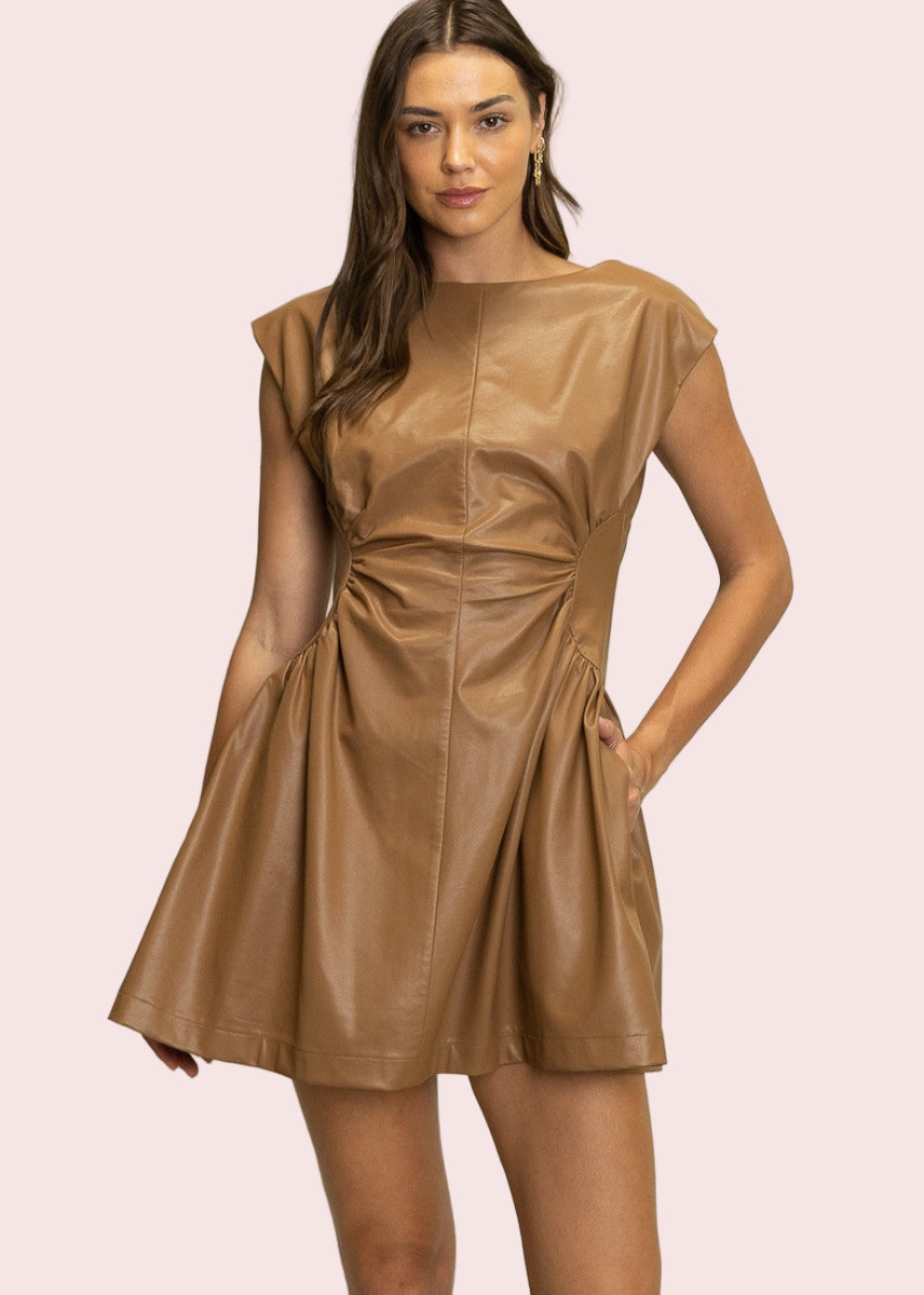ONLINE EXCLUSIVE: SLEEK UPTOWN FAUX LEATHER MINI DRESS