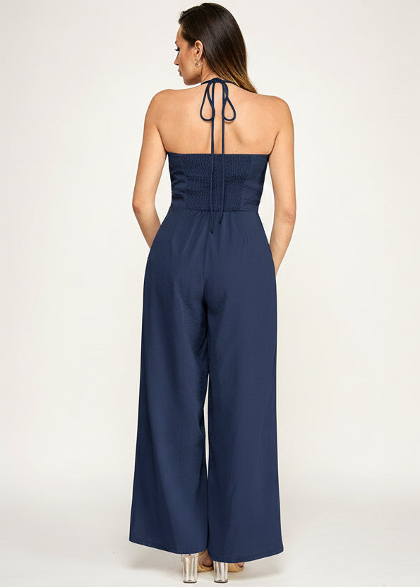 ONLINE EXCLUSIVE: FIRST CLASS COASTLINE NAVY HALTER JUMPSUIT