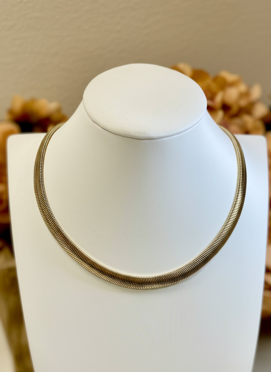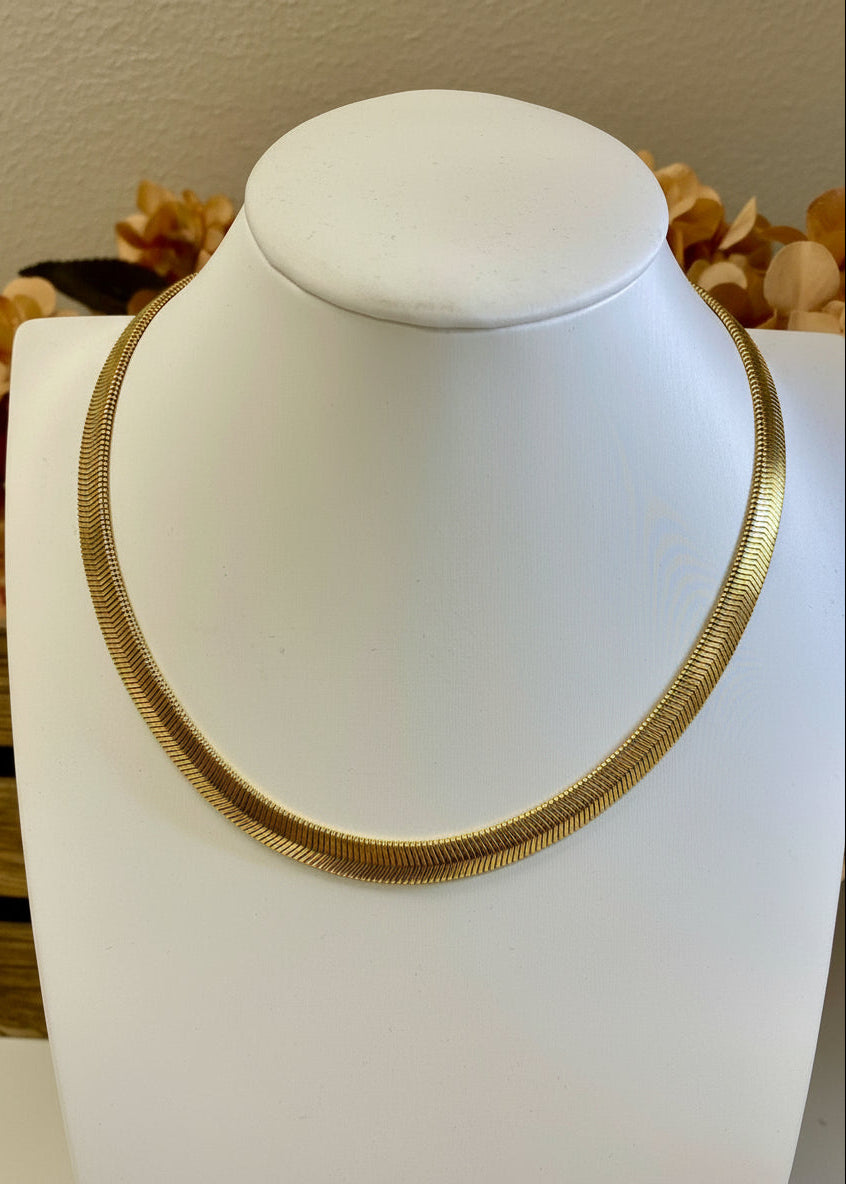 A little shimmer goes a long way. The Happy To See It Gold Herringbone Chain Necklace has a timeless look that always feels refined and put-together. This gold necklace features a quarter inch thick chain with a lobster clasp closure.
