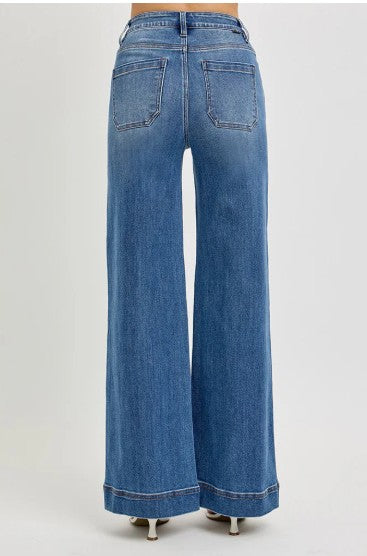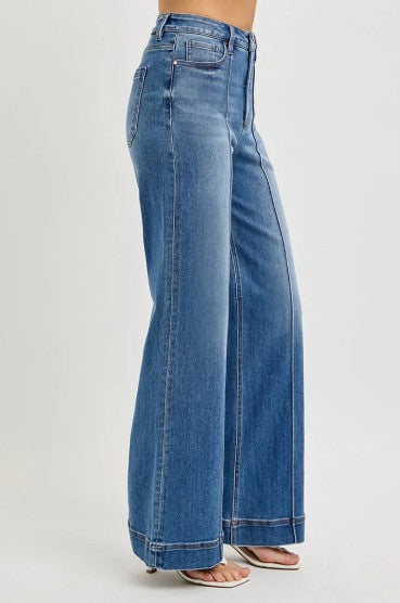 Upgrade your denim game with the RISEN HIGH RISE ANKLE WIDE PINTUCK JEANS. These trendy jeans feature a flattering fit with a medium-high rise and unique front seam detailing. Perfect for any occasion, these jeans will make you stand out from the crowd. Don't just blend in, RISEN above the rest!