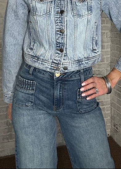 These KUT MAYA HIGH RISE WIDE LEG strike the perfect balance between structure and comfort. Designed in a classic medium wash with a bold wide hem, they bring an effortlessly polished feel to any look. Fab Ab pockets offer subtle shaping, while the stretchy material keeps the fit easy and flattering all day long.