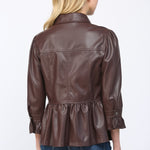 BUBBLY PERSONALITY PEPLUM FAUX LEATHER TOP