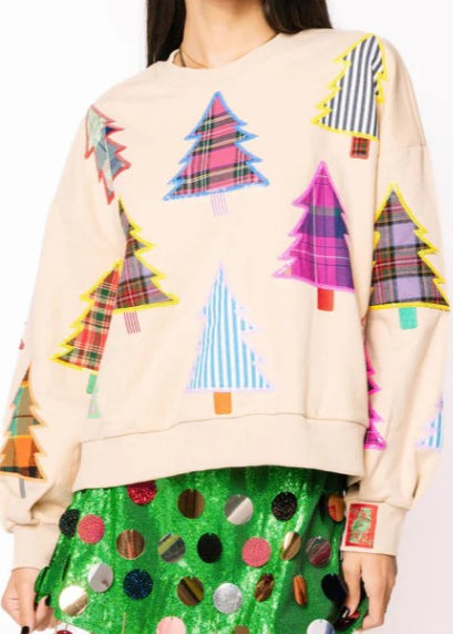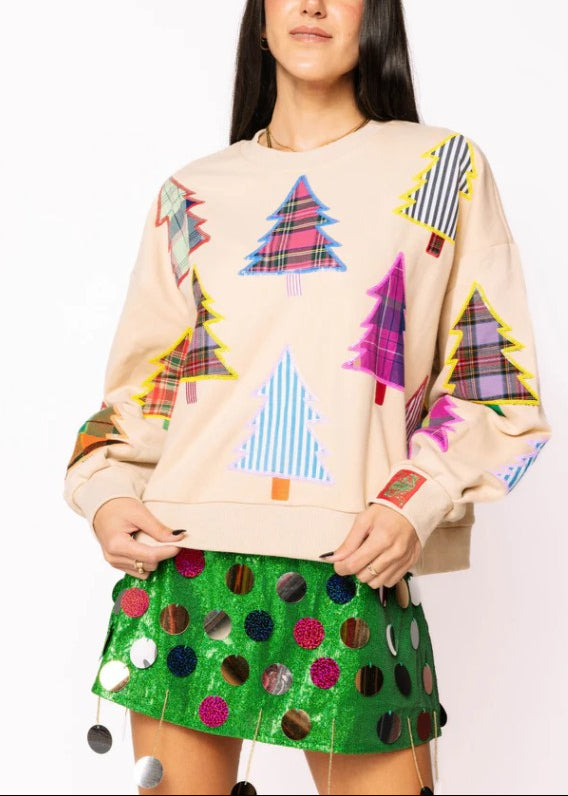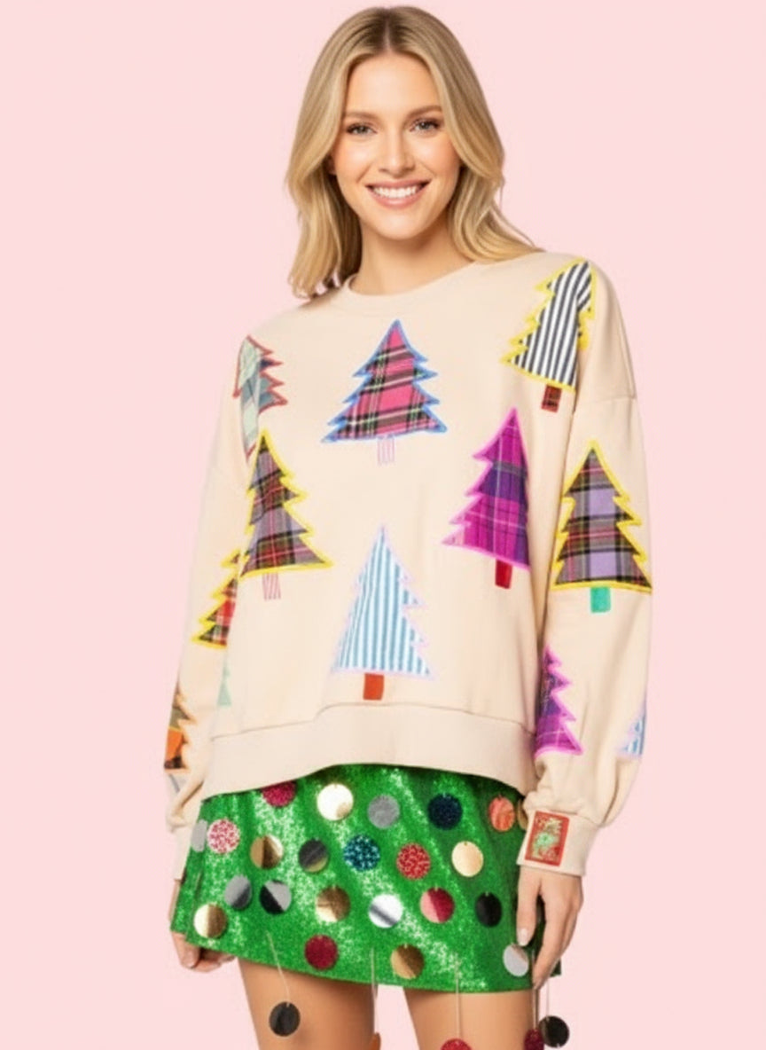 ONLINE EXCLUSIVE: QUEEN OF SPARKLES PLAID CHRISTMAS TREE SWEATSHIRT