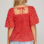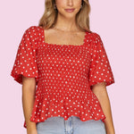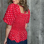 DANCING IN THE SUN RED POLKA DOT PEPLUM TOP