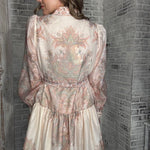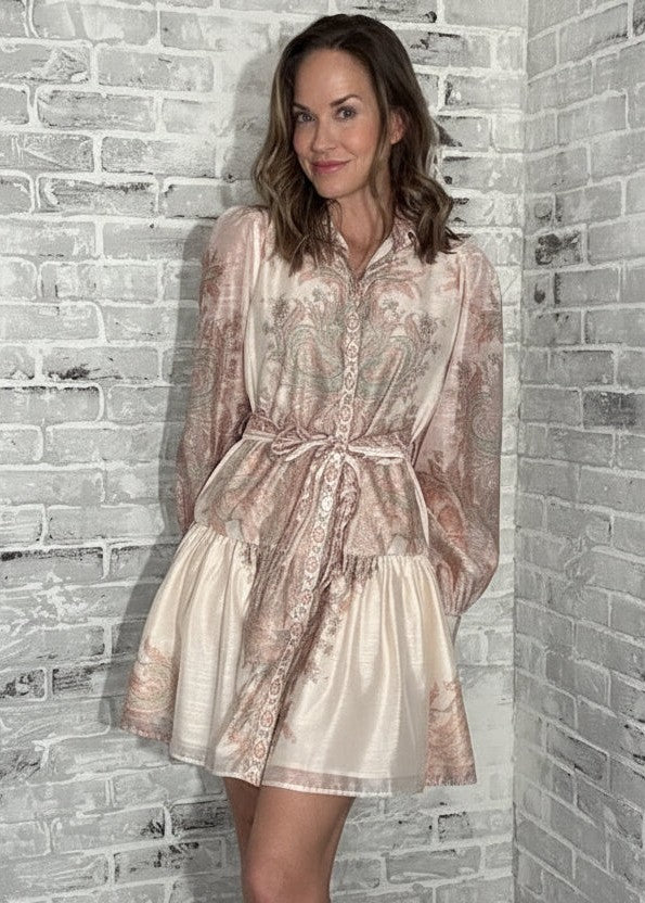 This SUNDAY CHIC PRINT MINI DRESS is your new spring essential, bursting with personality and style. Button down the front for easy styling, and let the long sleeves keep you cozy while the drop waist flatters your figure. Tie on the included fabric belt to cinch your silhouette and add dimension to your look. Perfect for Easter celebrations, weekend adventures, or whenever you want to feel bright and confident. It's the kind of dress that makes getting dressed fun—playful, pretty, and ready for anything.