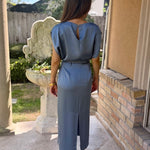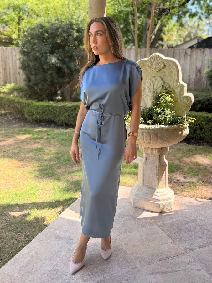 Elevate your Easter celebration with this stunning EASTER BRUNCH BLUE MIDI DRESS. Featuring a flattering round neckline, graceful drop shoulders, and a sophisticated back slit, this piece combines elegance with modern style. The midi length offers timeless appeal, while the strategic slit adds movement and visual interest. Perfect for brunch, garden parties, or any spring occasion where you want to look polished and put-together.