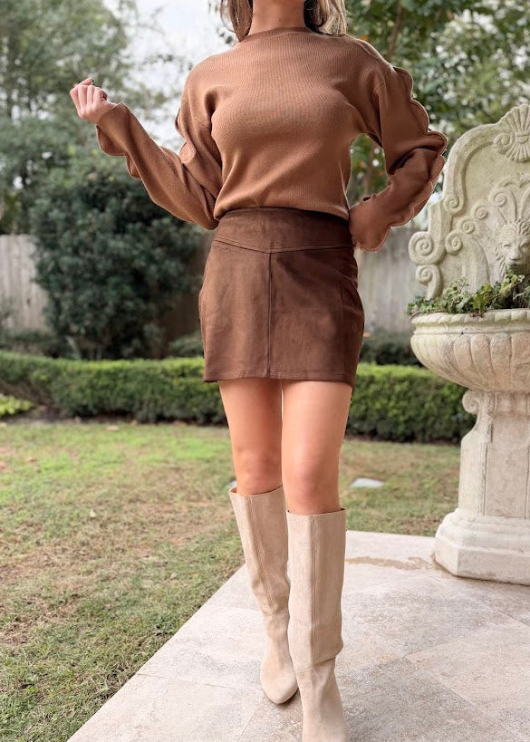 LEAVE A MESSAGE FAUX SUEDE MINI SKIRT