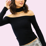 Command attention with the GLAMOUR GIRL BLACK CHOKER NECK SWEATER, a perfect blend of edgy and elegant. Its flattering off-shoulder design highlights your collarbones, while the attached choker adds a bold, fashion-forward touch. Crafted for a sleek fit, this top effortlessly elevates any look, making it an essential piece for nights out or standout casual style.