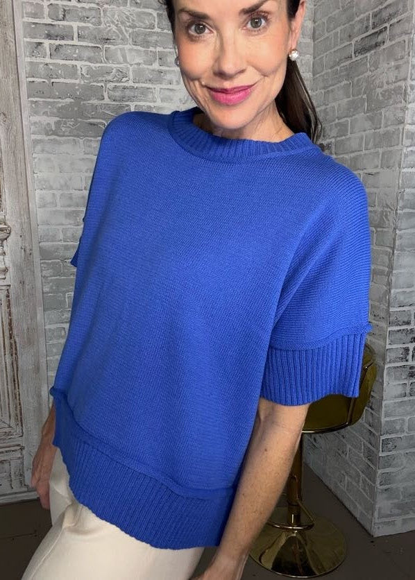 Catch the essence of spring with our COASTAL BREEZE ROYAL BLUE SWEATER —a breezy layer that brings seaside vibes to your everyday wardrobe. The relaxed drop half sleeves and classic crew neck create an effortlessly cool silhouette perfect for mild weather transitions. Soft, comfortable, and undeniably fun, this sweater pairs beautifully with everything from denim to skirts. Your new go-to for those perfect spring days when you need just a touch of warmth and a whole lot of style.