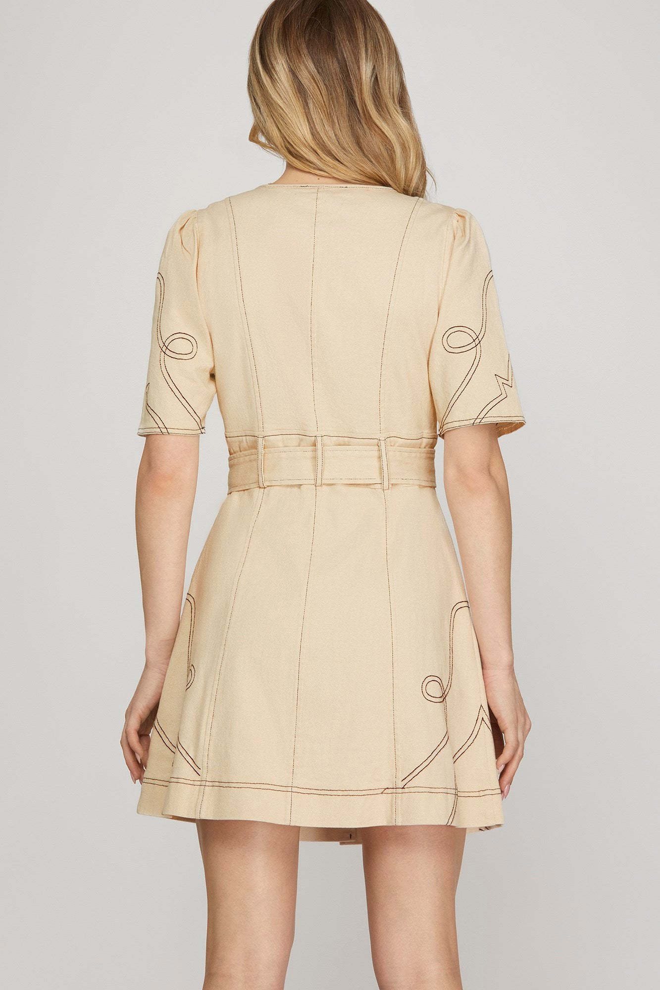 ONLINE EXCLUSIVE: CASUAL UPGRADE TWILL BOOT STITCH EMBROIDERED MINI DRESS