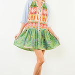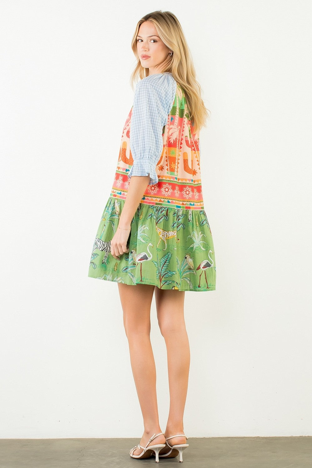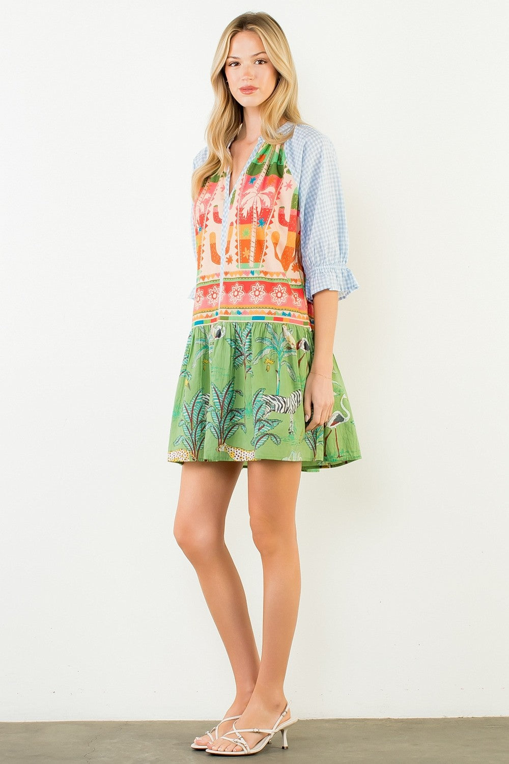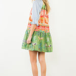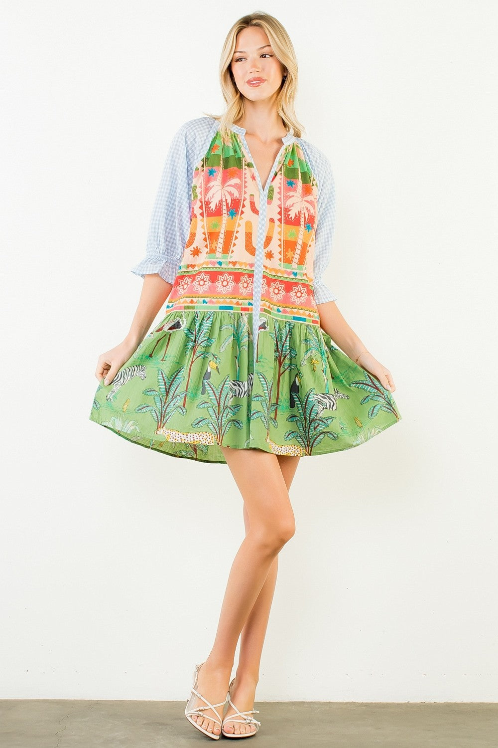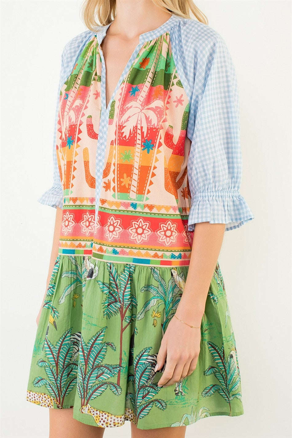 ISLAND SPIRIT MULTI PATTERN DRESS, V NECK DRESS, baby doll,